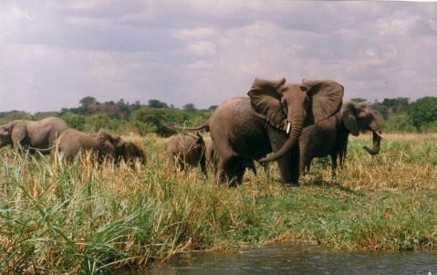 জলের মধ্যে এগিয়ে আসা একটা ব-দ্বীপের মতো জায়গায় আমাদের লঞ্চের চালক ইঞ্জিন বন্ধ করে দিল। গাইড বলে উঠল, “এলিফ্যান্ট”। সামনেই দেখি একটা বেশ বড় হাতির পাল – ছানাপোনা সমেত।