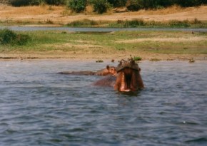 লাঞ্চ করে নিয়ে তাড়াতাড়ি পৌঁছে গেলাম বনবিভাগের বুকিং অফিসে, লঞ্চ বুক করার জন্য। বেলা দুটোয় লঞ্চ ছাড়ল ১৭ কিলোমিটার দূরের মার্চিসন ফলসের দিকে। আরও দুজন বিদেশী আমাদের সঙ্গী । এঁদের সঙ্গে আলাপ জমতে দেরী হলনা। আমাদের গাইড ফ্রেড্রিকের হাতে বাইনোকুলার, আমার গলায় ক্যামেরা। লঞ্চ চলল জলপ্রপাতের দিকে, ধীর গতিতে। কারণ প্রপাতটাই শুধু নয়, আরও অনেক কিছু দেখার আছে এই পথে। হঠাৎ চোখে পড়ল একদল জলহস্তী। দেখেই ছেলেদের সঙ্গে সঙ্গে আমাদেরও সবিস্ময় আনন্দ উচ্ছ্বাস। অগুন্তি হিপো দেখলাম কয়েক মিনিটের মধ্যে।