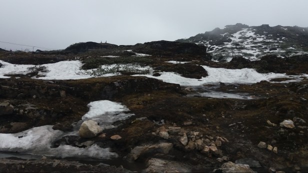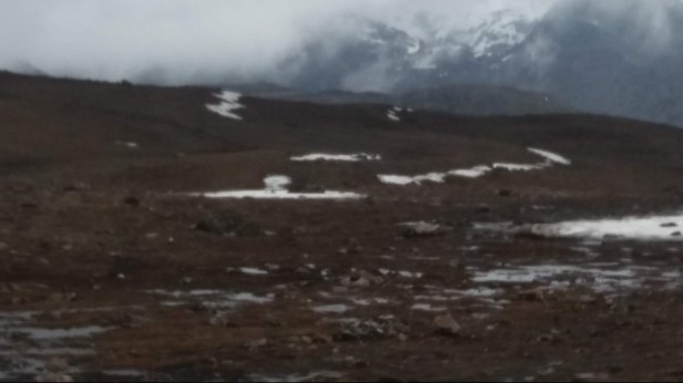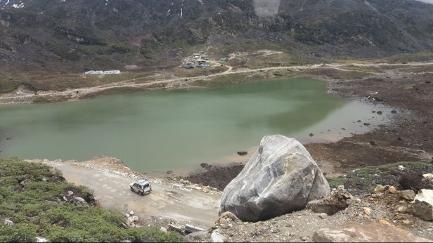 It was the month of May. So, the snow on the hills and the ‘road’ was melting, which created a deadly mess for the vehicles.  That is why for this journey we had to hire local drivers and four-wheel drive vehicles.  Our Innovas were no good beyond Tamang.   As we drove upwards, the dense greenery of pine and other trees that grow at high altitudes gave way to just grass growing on the hillsides where yaks were grazing.  Soon even this also vanished, and we were above the tree line and in the land of lofty mountains and snow.