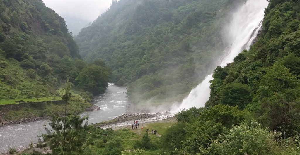 The Nuranang Waterfall, also known as the Jang waterfall, about which our manager had spoken the previous evening, turned out to be a beauty. The gushing water from a height of 100 metres was hitting some huge protruding rocks and this produced a mist. I can hardly describe the beauty of this waterfall set amidst thick forests and a gorge through which passes the Tawang River into which merged the waters from the fall. Our entire group descended the steps to enjoy the sight.  A small power plant at the base of the fall caters to the local need for electricity. We reached our hotel at Tawang by teatime.