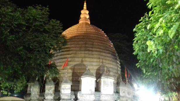 From the outside, the temple at Kamakhya is like any other Hindu temple built in the Assamese style.  However, the sanctum sanctorum – where the sacred body part (fossilised into a piece of stone) is kept and worshipped – is in a natural cave which goes down several feet below the surface.  To reach this dark Garva Griha, lighted by only two brass oil lamps, we had to remain in a line for nearly four hours.  Fortunately, we did not have to stand all through, as there were chairs for all to sit and move slowly ahead.  The last hundred metres or so had to be walked.
