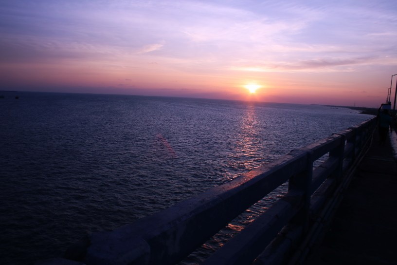 It took us three hours to cover the distance of 175 km by car from Madurai. Just before Rameswaram, we crossed the famous Pamban bridge over the sea connecting the mainland with the Pamban island in which Rameswaram is located. Running parallel to the road bridge, at a slightly lower elevation is the rail bridge of Pamban that appears to be almost touching the sea.
