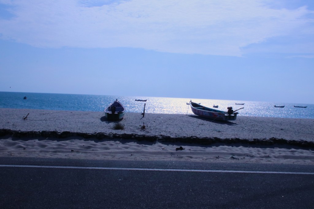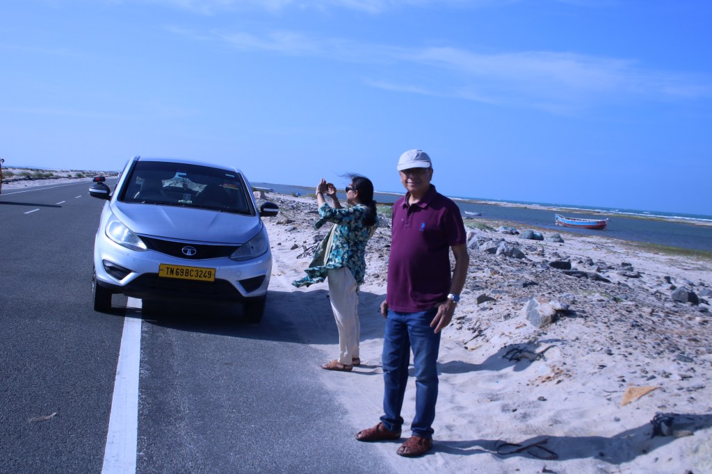 Our next destination was Dhonushkodi – the south-eastern tip of the Pamban island some 19 km from Rameswaram. It is the last point up to which there is a motorable road. The north-western tip of Sri Lanka is a distance of only 20 km from Dhanushkodi. The road ends at a large semi-circular area protected by railings. On three sides of this viewpoint is nothing but waters of the Bay of Bengal, the Palk Strait separating Sri Lanka from India, and further to the south the Indian Ocean.