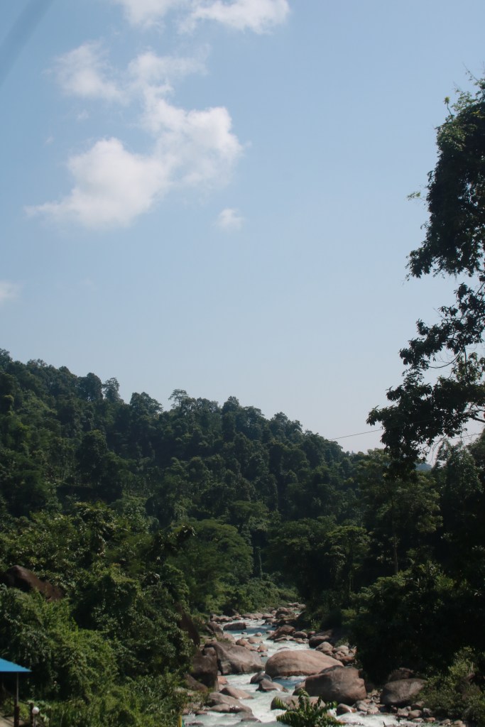 চাপড়ামারি জঙ্গলের মধ্য দিয়ে ছিল আমাদের যাত্রাপথ। এখানে দেখলাম পরীক্ষামূলক কফির ও গোলমরিচের বাগান। অনেক জায়গায় রয়েছে রবার গাছের বাগান। কিন্তু পথের সর্বত্র হাতির ছবি দিয়ে সতর্কবার্তা দেওয়া থাকলেও আমরা এবারের সফরে কোন বন্য হাতি দেখতে পাইনি।