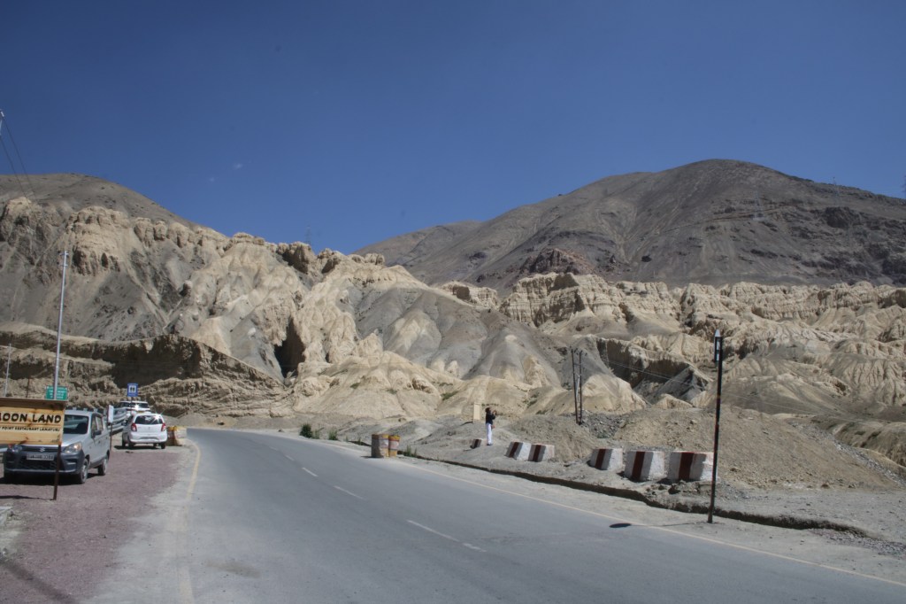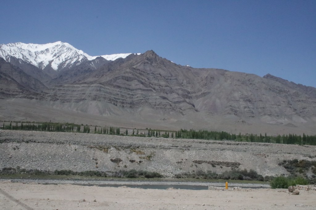 লে শহরের সীমা ছাড়াতেই লাদাখের যে রূপ চোখে পড়ল তার সঙ্গে আমার এ পর্যন্ত দেখা কোন পার্বত্য দৃশ্যের মিল নেই। ধূসর, খুব হাল্কা গোলাপী, কোথাও নিকষ কালো আবার কোথাও বা সবুজাভ পাহাড়। কতকগুলোর মাথায় বরফের মুকুট। একেকটা পাহাড় দেখে মনে হয় যেন বালি অথবা ঝুরো পাথরের পাহাড় – মনে হয় যেন এখনই ধস নামবে। কিন্তু তা নয়। হাজার হাজার বছরের বরফের হাওয়ায় পাথরগুলো ক্ষয়ে ক্ষয়ে এরকম হয়ে গেছে। বৃষ্টি তো এদেশে হয়ই না। শীতে বরফে ঢেকে যায় চারিদিক আর গ্রীষ্মে গলে যায়।