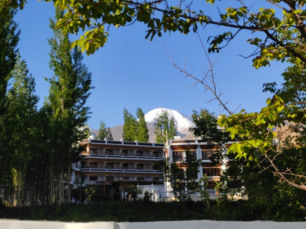 হোটেলের লবিতে আলাপ হল আমাদের দ্বিতীয় ম্যানেজারের সঙ্গে। তিনি বলে দিলেন চুপচাপ ঘরে গিয়ে জানালা খোলা রেখে বিশ্রাম নিতে এবং শুধু খাওয়ার সময় ছাড়া ঘোরাঘুরি না করতে। এই একদিন পুরো বিশ্রামের ব্যাপারটা ওখানকার আবহাওয়ার সঙ্গে মানিয়ে নেওয়ার জন্য খুব গুরুত্বপূর্ণ। আর জল খাওয়া – একটু একটু করে বার বার, কারণ খুব শুকনো জায়গা হওয়ায় ওখানে শরীরে জলাভাব হওয়ার সম্ভাবনা। আমরা যখন লে পৌঁছলাম তখন ঠান্ডা বেশি ছিল না, শেষ-নভেম্বরের দিল্লির মতো।