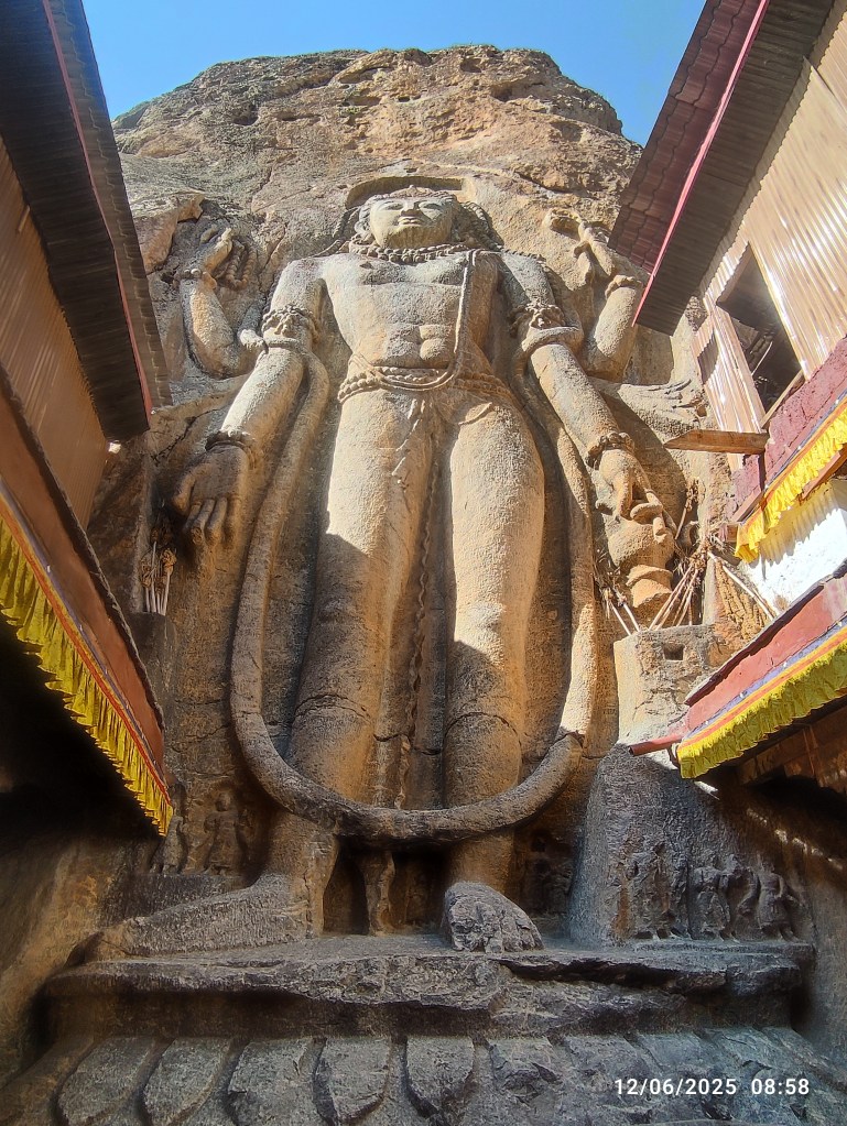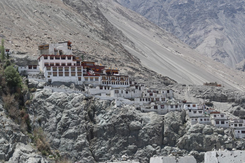 প্রায় পঁয়তাল্লিশ মিনিট ওই জায়গাটায় কাটিয়ে আমরা চললাম ন্যুব্রা ভ্যালীর ডিসকিটে আমাদের হোটেলে। তবে তার আগে একটা সুন্দর বৌদ্ধ মঠ দেখলাম। ভর দুপুরে সূর্যদেব তখন মাথার উপর আগুণ ছড়াচ্ছেন, কিন্তু মঠের ভিতরটা বেশ ঠান্ডা। কিছুক্ষণ সেখানে পদ্মাসনে উপবিষ্ট বুদ্ধদেবের সামনে বসলাম। একজন বর্ষীয়ান লামা প্রসাদ দিচ্ছিলেন – আমাদের নকুলদানার মতো কোন মিষ্টি। তাঁর কাছে জানা গেল এই মঠটি তিব্বতী বৌদ্ধধর্মের হলুদ-টুপি সম্প্রদায়ের, এবং দালাই লামাও এই সম্প্রদায়ভুক্ত। তিনি এই মঠে অনেকবার এসেছেন। মঠের বাইরে ১০৬ ফুট উঁচু মৈত্রেয় বুদ্ধের সুন্দর মূর্তিটিরও তিনিই আবরণ উন্মোচন করেছিলেন।