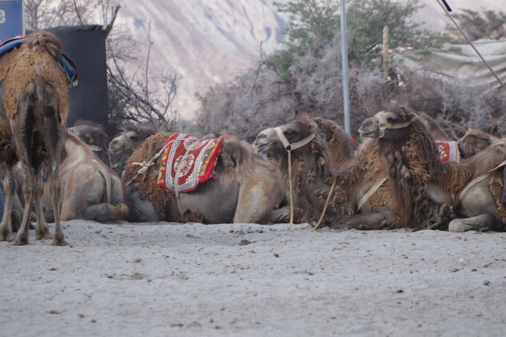 লাঞ্চের পর আমরা চললাম নুব্রা ভ্যালীর খোলা প্রান্তরে শীতল মরুভূমির আনন্দ উপভোগ করতে। ডিসকিট থেকে হুন্ডার – এই বিশাল প্রান্তরেই রয়েছে বালিয়াড়ি আর উটের পিঠে চড়া, তীরন্দাজি ইত্যাদির ব্যবস্থা। এই ময়দানের একদিকে পাহাড়ের সারি – ধূসর, রুক্ষ যার কোল ঘেঁষে বইছে শায়ক নদী; আর অন্যদিকে অনেক দূরে গ্রামের ঘরবাড়ি ও বৌদ্ধ মঠ।
