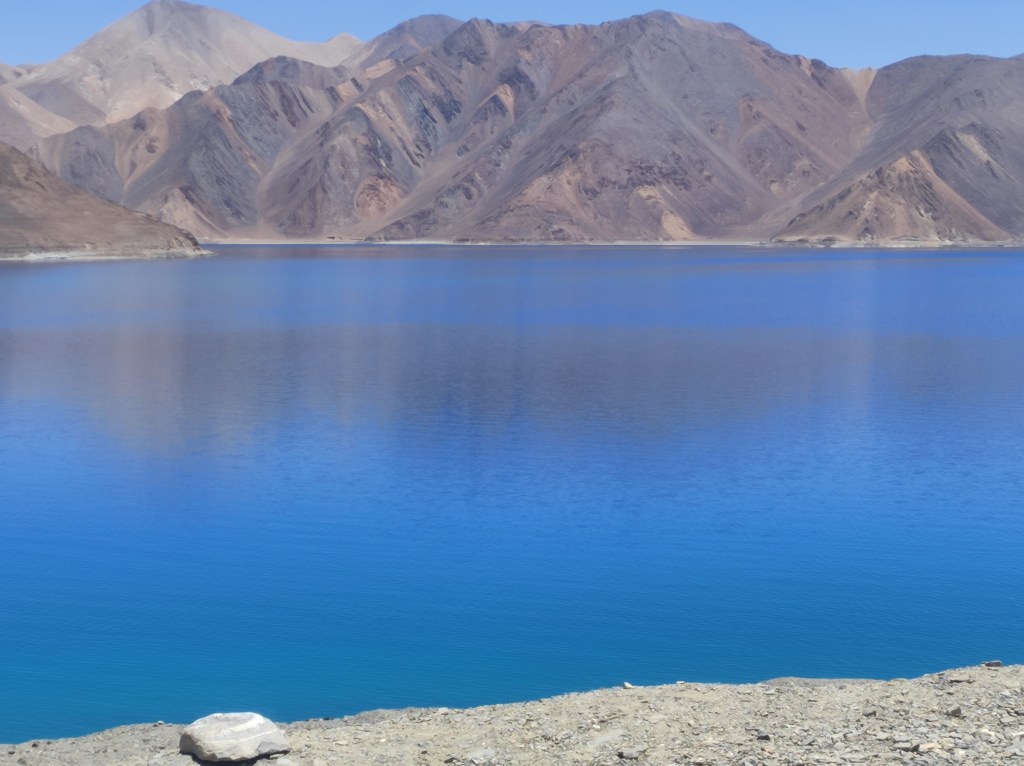 ভারত-তিব্বত সীমান্তের এই প্যাঙ্গং লেক বা, প্যাঙ্গং সো আয়তনে প্রায় ৭০০ বর্গ কিমি হলেও ভারতের অধিকারে রয়েছে মাত্র ৪০ শতাংশ আর চিনের ৫০ শতাংশ। বাকি ১০ শতাংশের অধিকার নিয়ে মতানৈক্য আছে। সে যাই হোক, প্যাঙ্গং লেকের সৌন্দর্য, এক কথায়, অনৈসর্গিক। এরকম নীল জল হ্রদ আমি এর আগে কোথাও দেখিনি। উপরে মেঘ-শূন্য নীল আকাশ আর নীচে গাঢ় নীল জল, আর সেই জলে পড়েছে তীরবর্তী পাহাড়গুলোর ছায়া। এ দৃশ্য চুপ করে বসে উপভোগ করার।