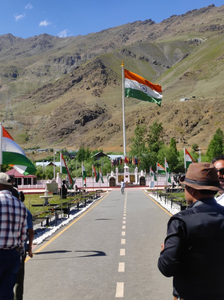 স্মৃতিসৌধের গেটের কাছে আমাদের দাঁড়াতে হল। সেনাবাহিনীর একজন আধিকারিক এই পরিসরটির গুরুত্ব এবং এখানে পালনীয় কিছু নিয়মের ব্যাপারে আমাদের বললেন। গেট থেকে একটা রাস্তা সোজা চলে গেছে স্মৃতিসৌধ পর্যন্ত। এই পথের দু’ধারে সারি সারি জাতীয় পতাকা এবং কার্গিল যুদ্ধে পরমবীর চক্র ও মহাবীর চক্র পদক প্রাপ্ত জওয়ান এবং অফিসারদের আবক্ষ মূর্তি। মূর্তির নিচে ফলকে তাঁদের সংক্ষিপ্ত পরিচয় এবং যে কারণে তাঁরা এই পদক পেয়েছিলেন তা লেখা আছে। ওই যুদ্ধে মোট চার জন পরমবীর চক্র ও এগারো জন মহাবীর চক্রে সম্মানিত হয়ে ছিলেন। পরমবীর চক্র প্রাপ্তদের মধ্যে দু’জন মরণোত্তর এই পদক পান।